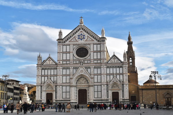 Dante non vide mai la facciata finita di Santa Croce, tuttavia quello che è certo è che vi trascorse del tempo al suo interno. Alcuni hanno affermato che Dante fosse un terziario francescano, il che spiegherebbe perché indossasse una corda intorno alla vita nell’Inferno (quella che Virgilio lancia nell’abisso per chiamare il mostro Gerione). I sostenitori di questa tesi sottolineano anche il fatto che il nostro poeta fu sepolto vicino a una chiesa francescana a Ravenna.