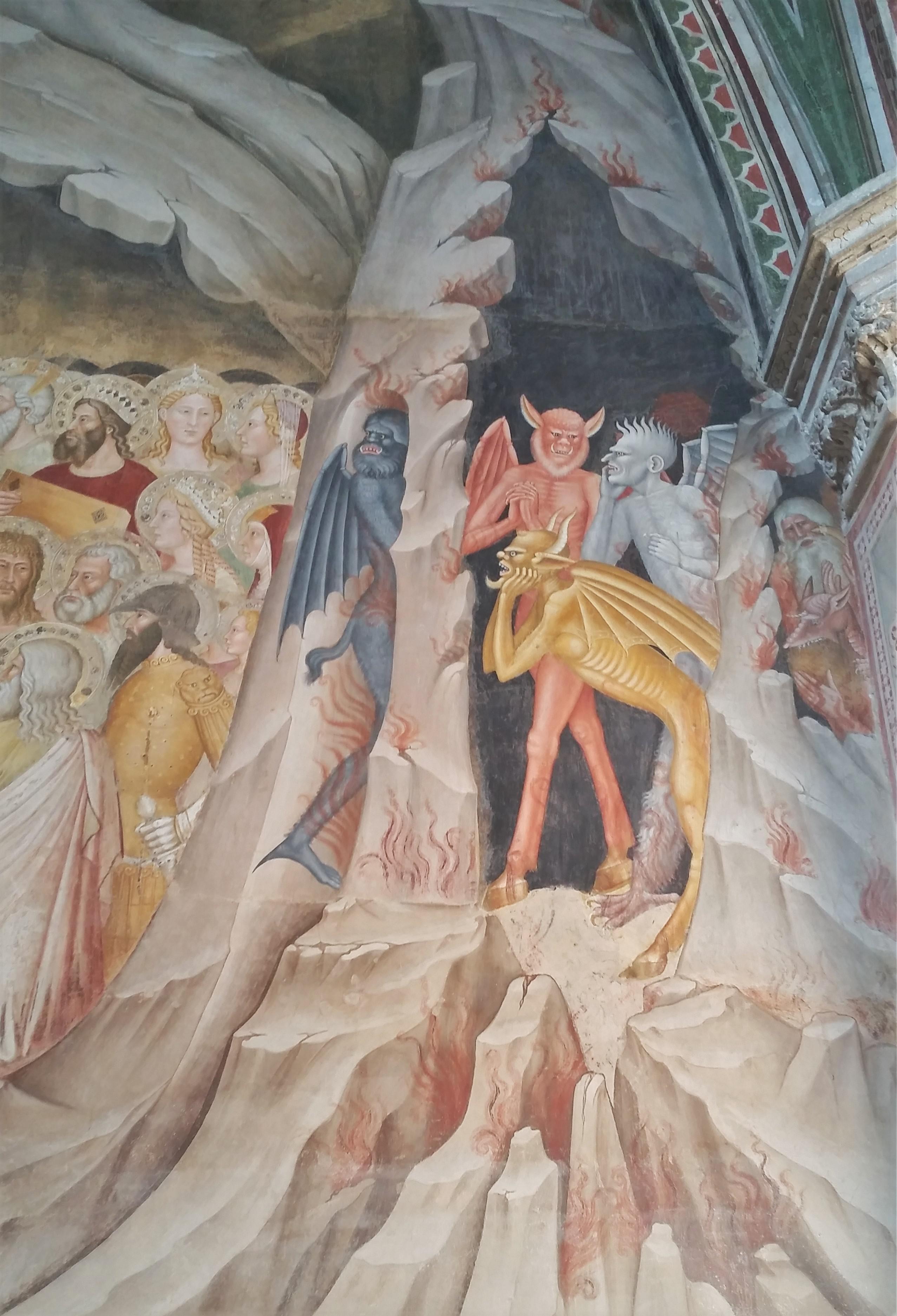 Nel Cappellone degli Spagnoli (Andrea di Bonaiuto, 1366-67) si può vedere una serie di diavoli molto simili a quelli incontrati da Dante in Malebolge.
