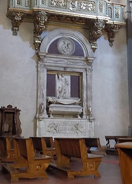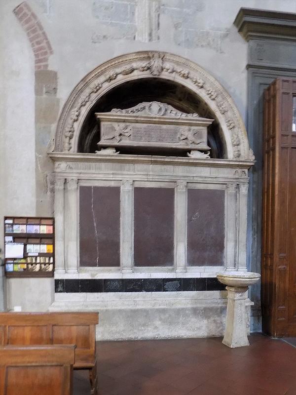 In 1285 the Badia was renovated by Arnolfo di Cambio who turned its apse toward the east and the city walls (where Via del Proconsolo now runs). In the 1600s, the Badia was rotated again, this time with its apse pointed toward the Arno, and took the shape of a Greek cross. Hugh of Tuscany is buried in the tomb (below) on the east wall that, according to Vasari, was Mino da Fiesole’s masterpiece (ca. 1469-81).