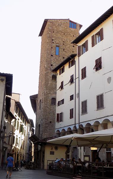 Courtly lyric and later Tuscan poetry often praised adulterous love affairs, especially of the non-sexual variety. This is because ‘normal’ marriages were arranged and, as such, rarely led to breathless love affairs. There is no concrete evidence that Dante and Beatrice were involved in a physical relationship, or that they weren’t. Dante was married to Gemma Donati who had lived next to the Donati tower in piazza San Pier Maggiore (below) before moving to Dante’s house.