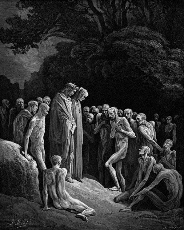Forese, with whom Dante had exchanged tenzoni (sonnets sent back and forth, repeating the same rhyme scheme), is not the only poet on this terrace. In fact, it is here that Bonagiunta da Lucca coins the phrase dolce stil novo in reference to Dante’s superior artistic talent (Purg. 24.57). This is the source of the name “Sweet New Style,” which is often used to refer to the poetic group to which Dante and Guido Cavalcanti belonged during their youth.