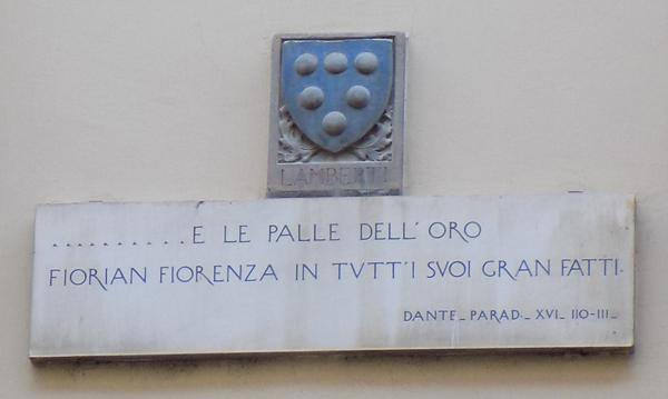 Among these were the members of the Lamberti family (whose coat of arms featured golden spheres on a blue field), Ghibellines who were exiled from Florence in 1258.