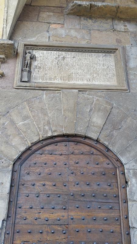 Non lontano da questa lapide se ne trova un’altra che ricorda la piena dell’Arno. È scritta in carattere gotico ed è accompagnata dalla statuetta di un putto. L’iscrizione è antica ma la statuetta è più recente. Si legge: