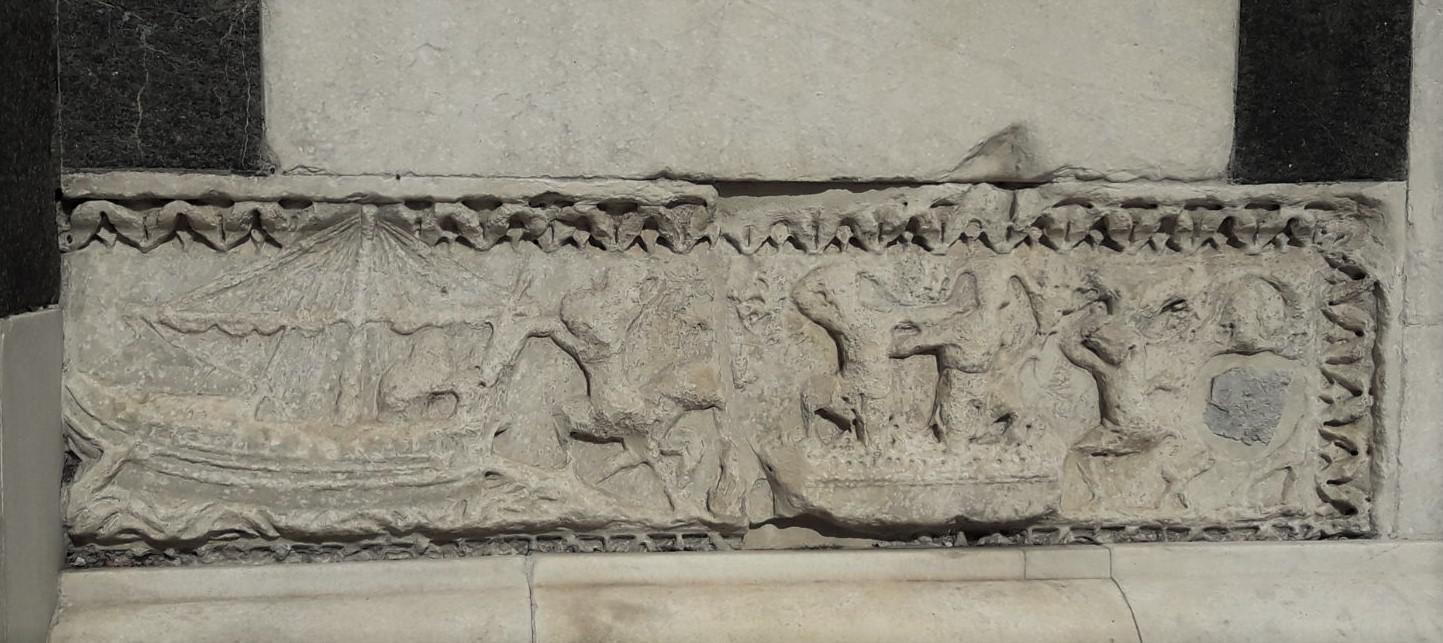 Nel 1895, tuttavia, gli archeologi scoprirono sotto il battistero i resti di case romane risalenti al I secolo d.C. Ai giorni nostri gli studiosi sono ancora incerti sulla sua data di costruzione, ma sembra ormai improbabile che fosse costruito veramente sui resti di un tempio romano. La più antica menzione del Battistero che si conosca parla di una chiesa e risale al 897. Alcuni credono che l’edificio venne costruito tra il IV e il V secolo, altri invece pensano che sia più antico di qualche secolo. Ad ogni modo, alcune lastre di marmo usate per l’edificazione furono riciclate da altri edifici del foro romano (ossia dove ora è Piazza della Repubblica). Incassato in una delle pareti esterne si può inoltre vedere un bassorilievo con scene di naumachia e vendemmiatori. Questa decorazione deriva probabilmente da uno dei sarcofaghi di epoca romana rinvenuti sul sito.